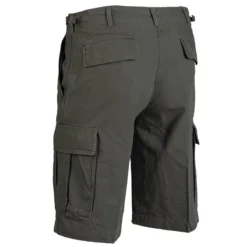 Die beliebte BDU Ripstop Shorts von Brandit ist der ideale Begleiter durch den Sommer. Sie ist bequem geschnitten und besteht zu 100% aus Baumwolle, was ein angenehmes Tragegefühl verspricht. Dank der 2 seitlichen Einschubtaschen, der 2 geknöpften Gesäß-Pattentaschen sowie der 2 seitlich aufgesetzten geknöpften Bein-Cargotaschen ist die Shorts auch sehr praktisch und bietet viel Stauraum. Die Bermuda wird mit einer Knopfleiste geschlossen. Sie besitzt an den Seiten Verstellbänder, mir denen die Taillenweite bequem reguliert werden kann und breite Gürtelschlaufen (ca. 4,5 cm). Aufgrund des Ripstop-Gewebes ist die Shorts besonders robust: alle paar Millimeter zieht sich ein kräftigerer Kett- bzw. Schussfaden durchs Gewebe. Sollte das Material reißen, läuft der Riss nicht ungebremst durch die gesamte Fläche, sondern stoppt am stärkeren (Rip Stop) Faden! Spart also Gewicht und bietet trotzdem Stabilität.
