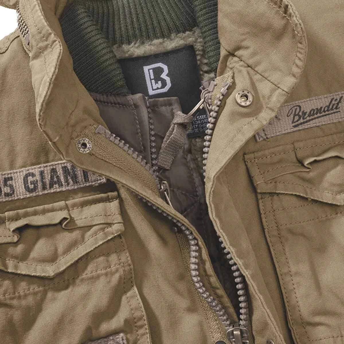 Die Kids M65 Giant Jacke von Brandit ist eine Premiumjacke nach dem Vorbild der Original M65 Jacke. Diese Kinderjacke besteht aus einem robusten und langlebigen Mischgewebe und eignet sich für Schule und Freizeit. Je nach Außentemperatur lässt sich die warme Innenjacke herausnehmen. Die Ärmelenden sind mittels Klettverschlusses verstellbar. Insgesamt 2 seitliche Einschubtaschen, die versteckte Kapuze im Kragen, die fixierten Schulterklappen und die zahlreichen Vintage-Applikationen machen die US M65 Feldjacke für Kinder zu einem absoluten Hingucker.