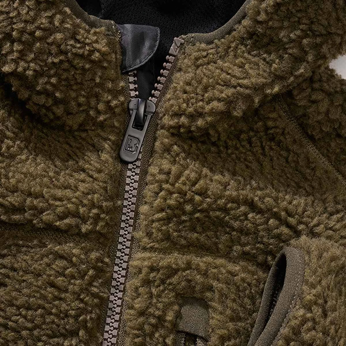Diese oliv-farbene Unisex Teddyfleece Kinderjacke in von Brandit ist die richtige Wahl für kühle Tage. Das hochflorige, warme Teddyfleece lässt keine Außenluft durchdringen und sorgt damit für eine hohe Wärmeleistung. Das atmungsaktive Innenfutter garantiert einen guten Wärmeaustausch und damit für ein angenehmes Tragegefühl. Die hochwertige Kids-Fleecejacke bietet zahlreiche praktische Details. Die geräumige Kapuze hält den Kopf warm, der hochwertige Mittelreißverschluss mit Kinnschutz und Windschutzleiste lässt sich einfach öffnen. Die geräumige Brusttasche und die beiden seitlichen Einschubtaschen werden jeweils mit einem Reverse-Reißverschluss geschlossen. Die Innentasche schließt mittels Klettverschluss. Die elastischen Ärmelabschlüsse und der Hüftbund lassen die Kälte draußen. Eine tolle Kinderjacke für die kühle Jahreszeit.