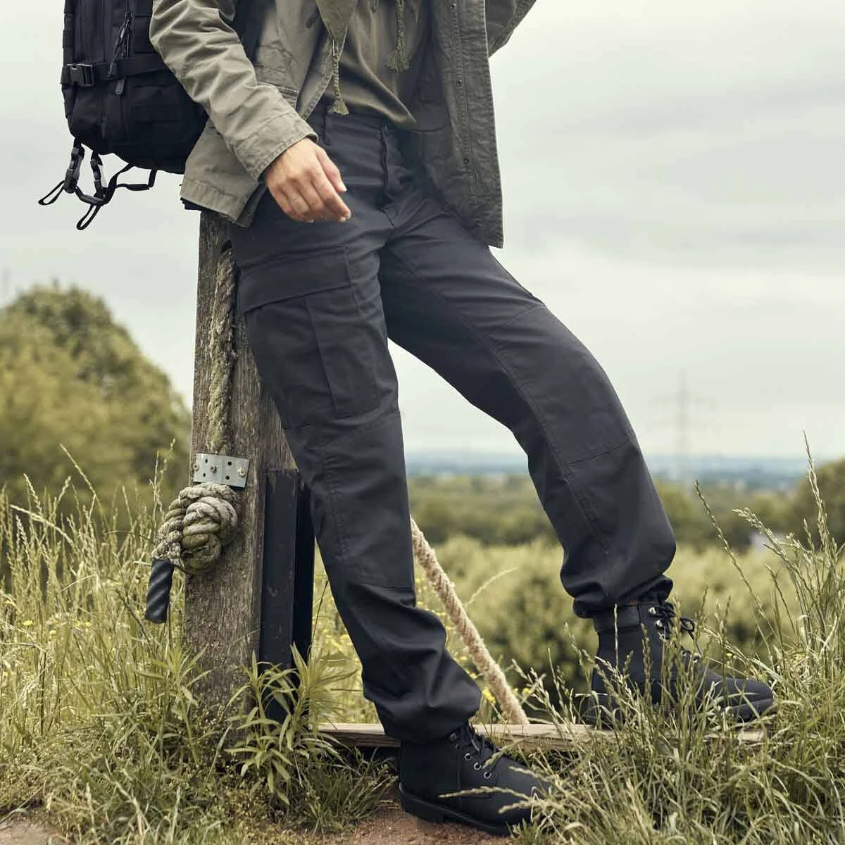 Die schwarze Women BDU Ripstop Trouser von Brandit ist eine wasserabweisende, pflegeleichte Hose für Outdoor-Aktivitäten, Hobby oder den Beruf. Das strapazierfähige Ripstop Material ist äußerst leicht und robust. Die Bundweite ist regulierbar, Knie und Gesäßpartie wurden verstärkt. Weitere praktische Eigenschaften sind das Zuband am Bein-Ende für die Weitenregulierung. 2 seitliche Einschubtaschen, 2 Gesäßtaschen und 2 seitlich angebrachte Cargo Taschen lassen genug Platz für Notwendiges. Diese Ripstop Damenhose ist eine praktische Outdoorhose für jede Gelegenheit.