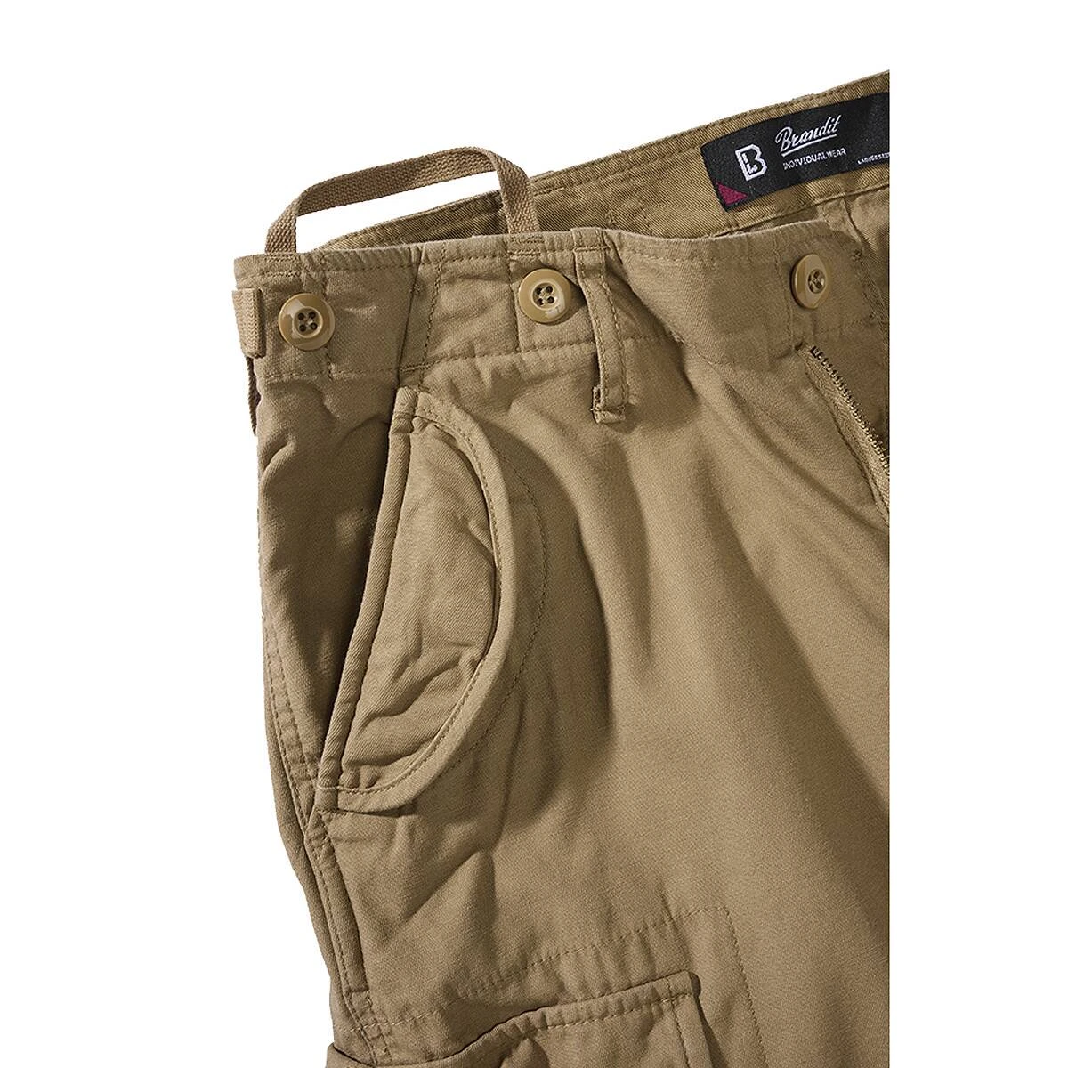 Die M65 Ladies Trouser ist die feminine Form der legendären M65 Armeehose im Loose Fit-Style. Sie besitzt einen leicht tiefen Schritt und ein locker geschnittenes Bein. Es gibt 2 große Bein-Cargotaschen, die lange Bänder besitzen, welche entweder nach aussen getragen oder in den praktischen großen Beintaschen versteckt werden können. Des Weiteren besitzt die M65 Damen (Woman) Hose 2 Front-Doppeltaschen, die aus 2 Eingrifftaschen und 2 aufgesetzen Pattentaschen mit Druckknopfverschluss bestehen. Die beiden kleinen Gesäßtaschen mit Druckknopfverschluss formen optisch einen echten Knackpo.