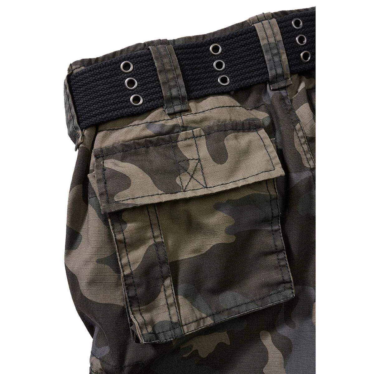 Die bewährte Brandit Savage Shorts gibt es jetzt auch aus leichtem und robustem RipStop-Material. Damit ist sie nicht nur stylisch und bequem, sondern auch für härtere Outdoor-Einsätze bestens geeignet. Sie besitzt 2 schräge Einschubtaschen, 2 geräumige Cargo-Beintaschen mit Druckknopfverschluss, 2 Gesäßtaschen mit Druckknopfverschluss sowie 2 Minipockets mit Druckknopfverschluss. Des Weiteren gib es an der rechten Seite ein kleines Reißverschlussfach sowie ein Print auf der rechten Beintasche. Am Bund und in den Beinenden befinden sich Tunnelzüge. Die tolle Cargoshorts mit weitem Bein wird inklusive eines robusten Vintage Gürtels ausgeliefert.