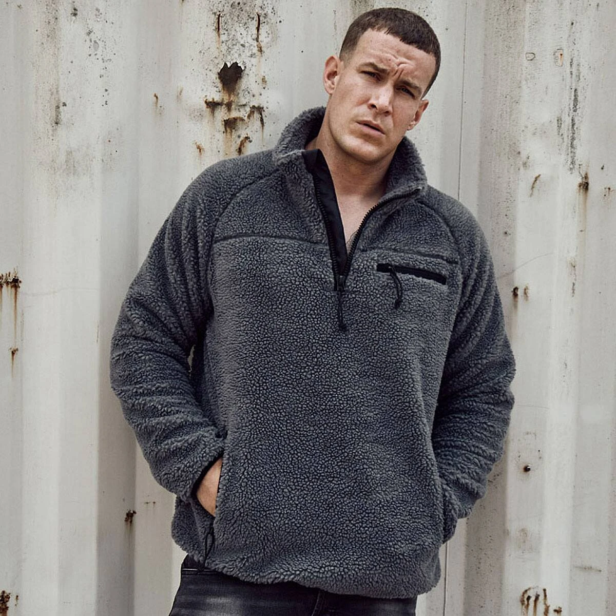 Der Teddyfleece Troyer Pullover von Brandit ist ein Kleidungsstück mit absoluter Wohlfühlgarantie. Durch das hochflorige, warme Teddy-Fleece außen und das atmungsaktive Innenfutter bietet er eine hohe Wärmeleistung. Der Troyer besitzt einen hochwertigen Reißverschluss mit Kinnschutz und Windschutzleiste, eine geräumige Brusttasche mit Reißverschluss, 2 seitliche Reißverschlusstaschen sowie eine Innentasche mit Klettverschluss. An allen Zippern befindet sich eine Zughilfe. Durch den hohen Stehkragen und den elastischen Ärmel- und Hüftbund ist man bestens vor Wind und Kälte geschützt. Der Teddyfleece Troyer ist normal geschnitten.