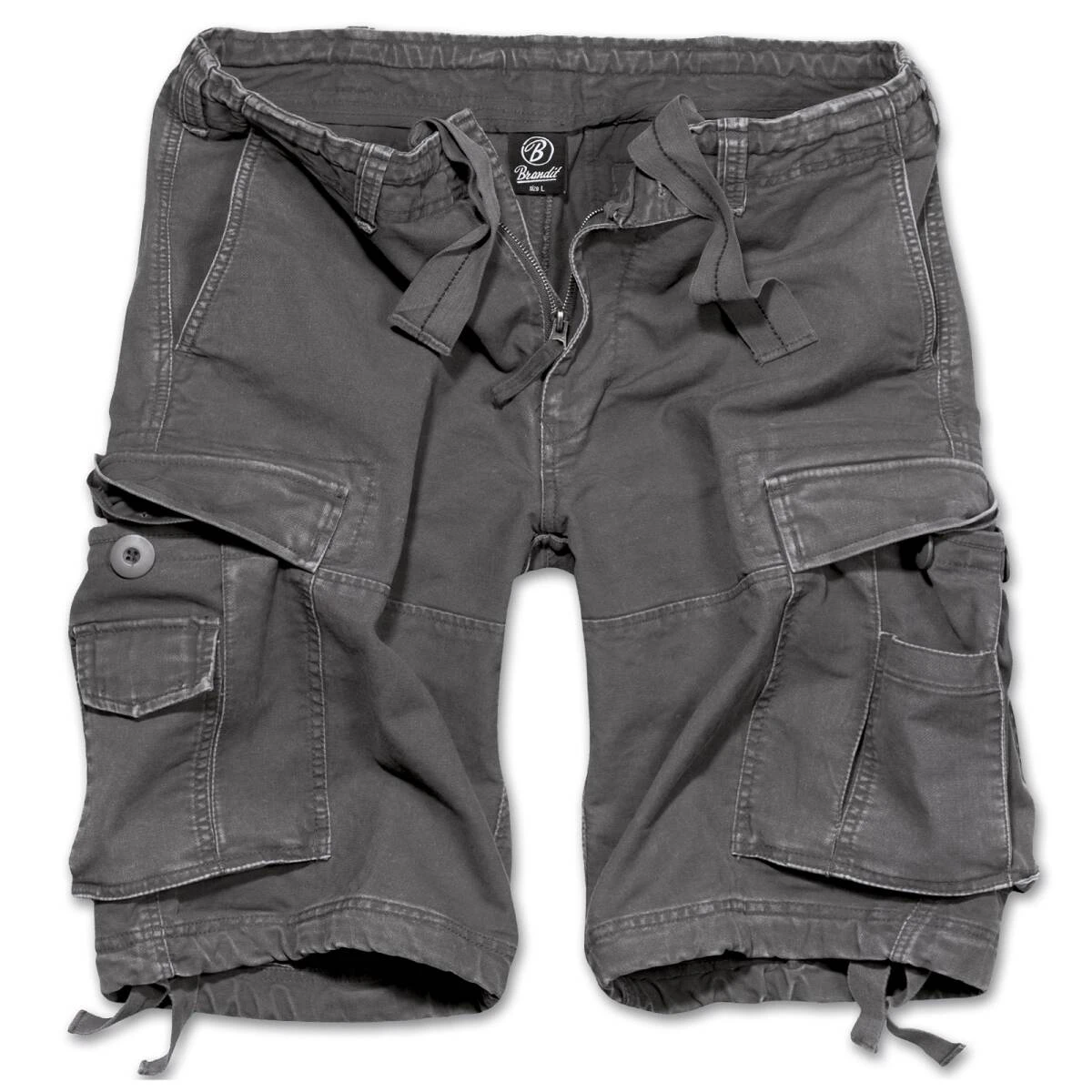 Die Vintage Shorts von Brandit ist der Klassiker unter den Cargo-Shorts. Sie wurde maschinell so bearbeitet, dass sie im typischen Vintage-Style abgetragen und verwaschen aussieht. Der robuste und unverwüstliche Baumwollstoff in schwerer Qualität macht die Hose zu jedem Abenteuer tragbar. Die 2 großen Beintaschen mit den nochmals extra aufgenähten Einschubtaschen bieten Platz für verschiedenste Dinge. Seitlich hat die Shorts 2 schräge Einschubtaschen und zusätzlich noch 2 Gesäßtaschen mit Knopfverschluss. Im Bund und am Beinabschluss sind Tunnelzüge eingearbeitet.