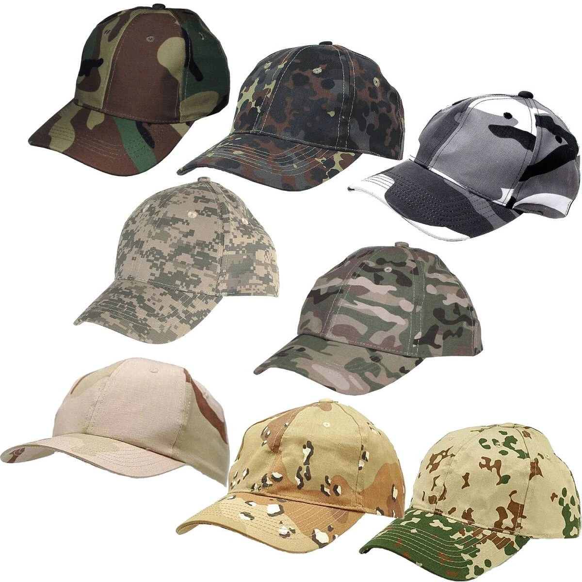 Farben: wahlweise woodland, flecktarn, metro, operation camo, AT-digital, 3 Farben desert, tropentarn oder 6 Farben desert