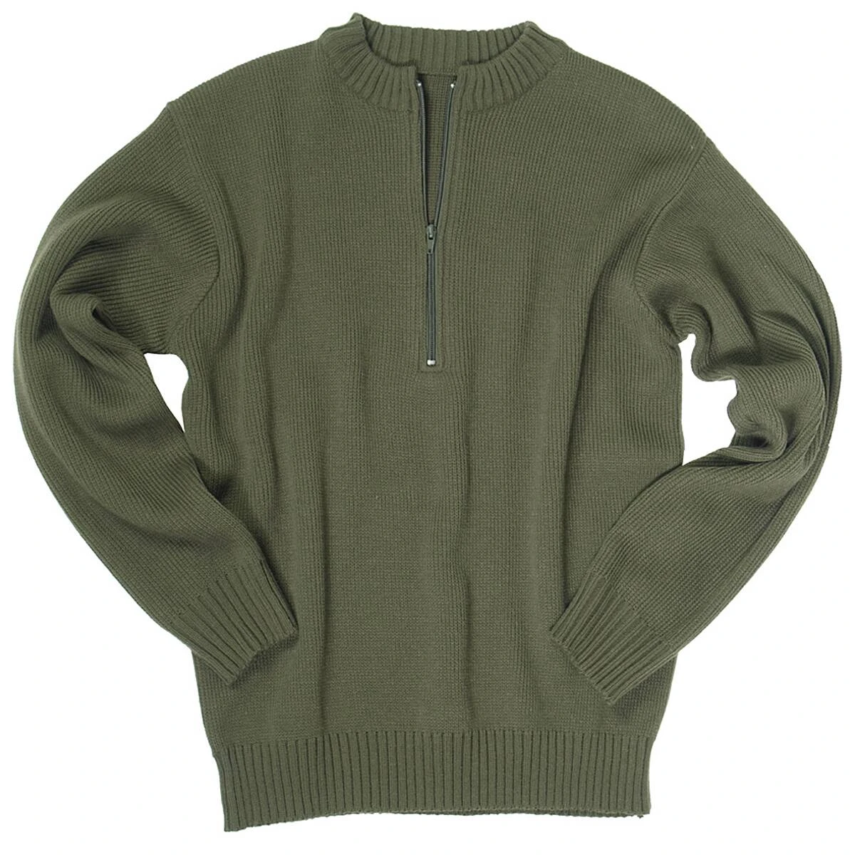 Der Schweizer Armeepullover besticht durch seine klassische Optik und besteht aus enggestricktem, reinen Polyacryl. Er besitzt Strickbündchen an den Ärmeln und am Saum sowie einen Rundhalsausschnitt mit tiefem Reißverschluss. Er ist perfekt für die kühlen Tage des Jahres geeignet.